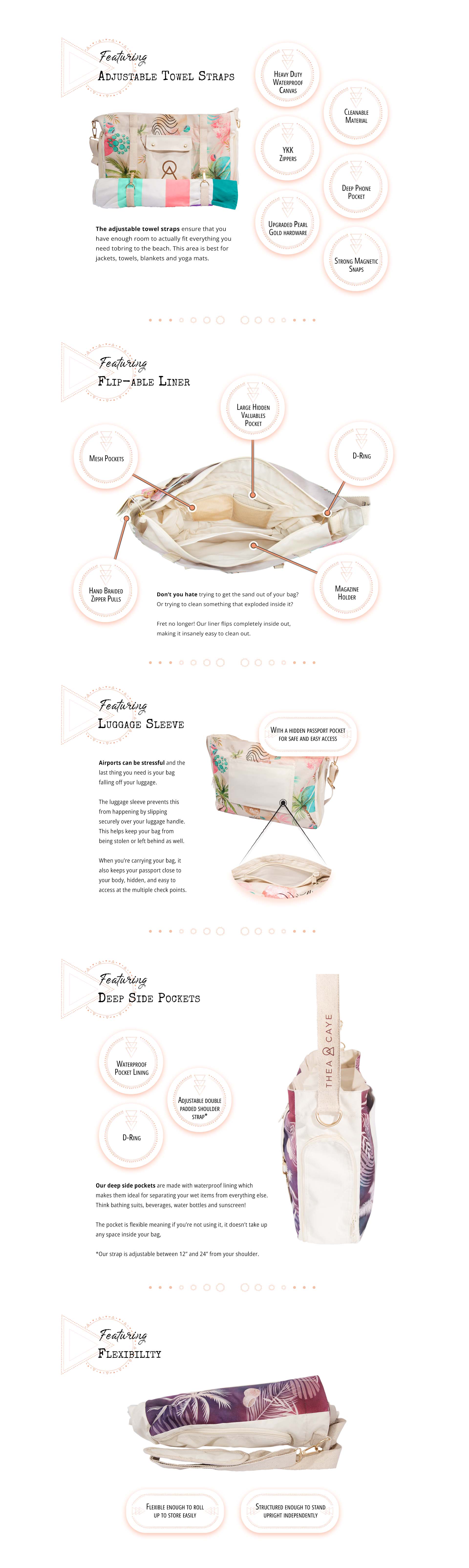 We designed this bag to take away all of your bag overwhelm. No longer will you have to dig through a bottomless pit to find your phone, or have soaked belongings from a rogue wave.